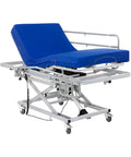 - Ergonomía Protegida: El carro elevador integrado permite ajustar la altura de la cama, evitando malas posturas y lesiones por esfuerzo.