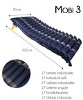 El colchón antiescaras MOBI 3, con celdas de aire, mejora la calidad de vida de los pacientes que deben permanecer en cama durante largos periodos, siendo la solución más eficaz para prevenir úlceras y escaras. Dispone de un dial para ajustar la presión del aire. Este colchón antillagas es fácil de usar y está recomendado para pacientes con riesgo medio-alto de úlceras por presión de grado I, II y III.