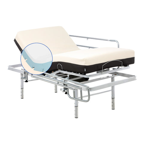 Pack Cama Articulada regulable en altura con Colchón Ortopédico Viscoelástico | Mando inalámbrico (80x190 cm, barandillas)