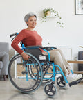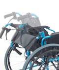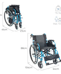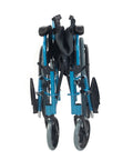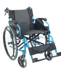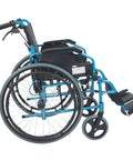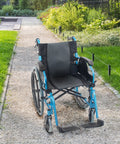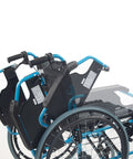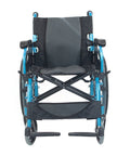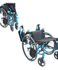 Silla de ruedas plegable con respaldo partido y reposabrazos abatible color azul