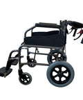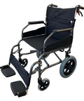 Silla de ruedas plegable de tránsito con ruedas pequeñas y respaldo reclinable