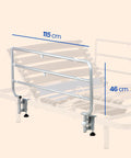 Las barandillas Geriafy cuentan con unas dimensiones de 115 cm de largo y 45 cm de alto (desde el marco del somier), ofreciendo una cobertura amplia que evita deslizamientos o caídas durante el descanso.